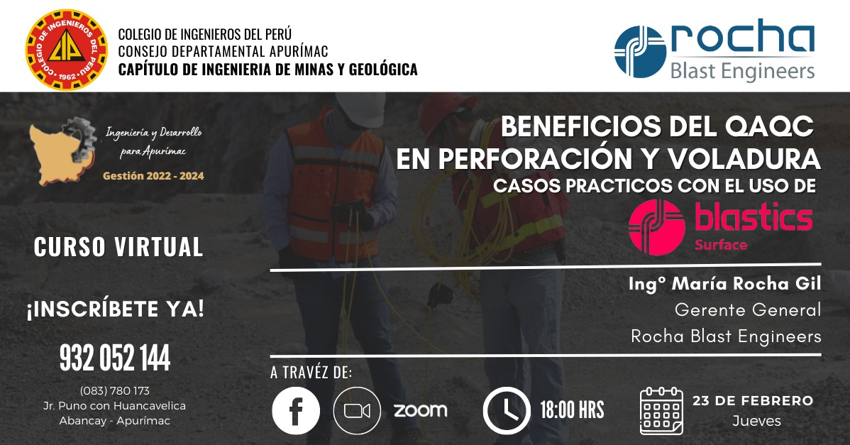Organizado por el Capítulo de Ingeniería de Minas y Geológica del Colegio de Ingenieros del Perú CD Apurímac en coordinación con la empresa Rocha Blast Engineers.
