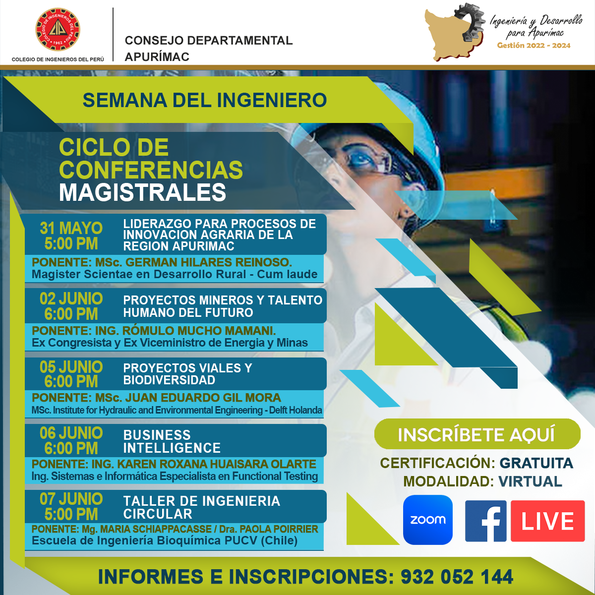 #ciclodeconferencias #cipapurimac #liderazgo #agraria #ingenieria #conferencia #virtual #apurimac #abancay #andahuaylas #biodiversidad #proyectos #mineros #business #intelligence