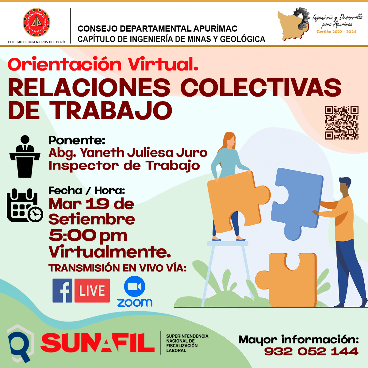Organizado por el Capรญtulo de Ingenierรญa de Minas y Geolรณgica del Colegio de Ingenieros del Perรบ CD Apurรญmac en coordinaciรณn con SUNAFIL.