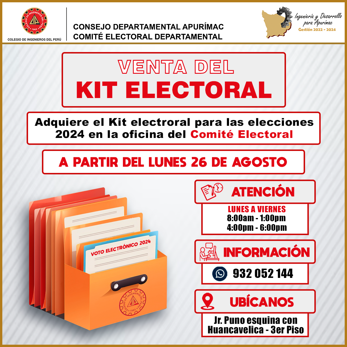 Ya puedes adquirir tu kit electoral para Consejo Departamental y CapΓtulos de IngenierΓa, para las Elecciones Generales del CIP 2024.