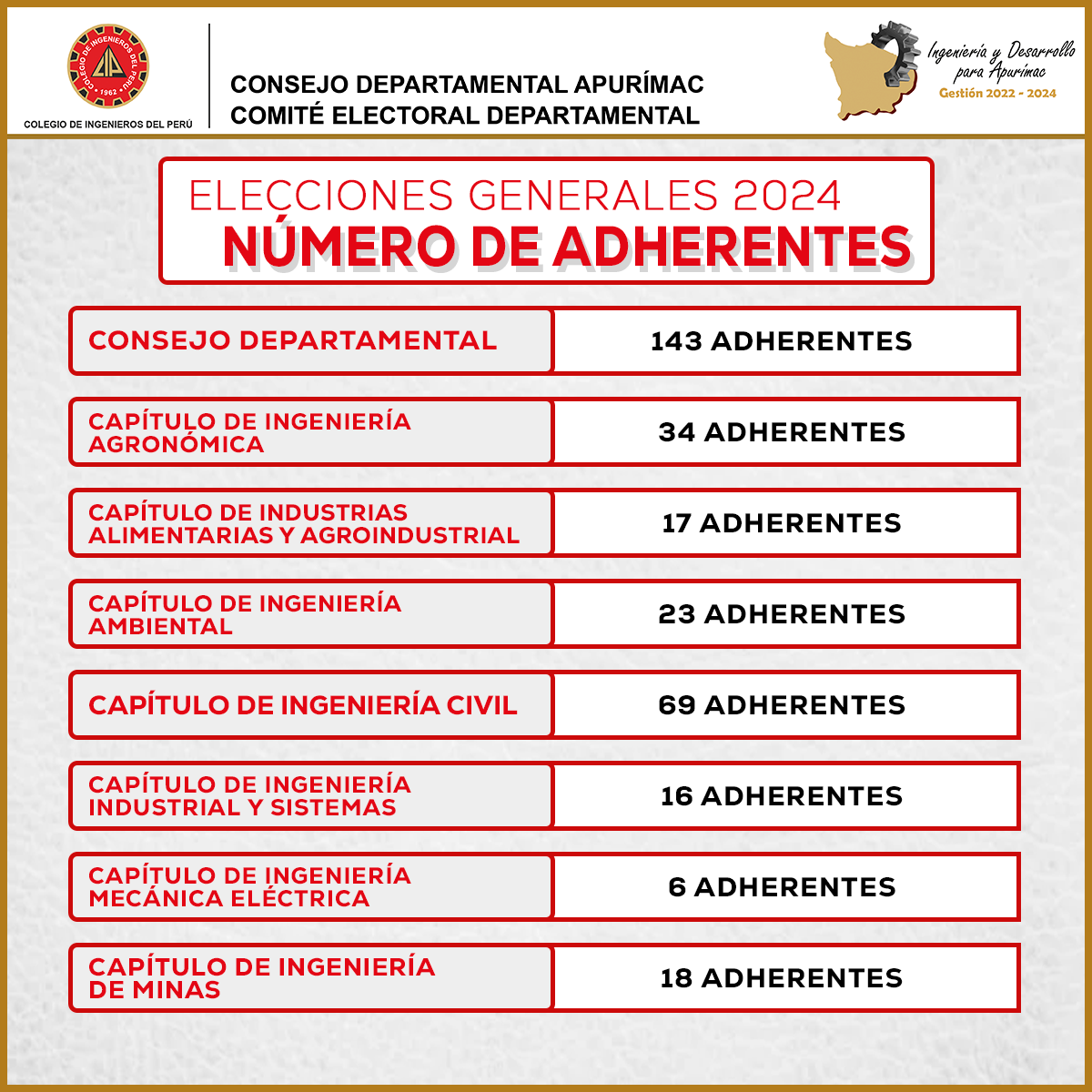 Recuerde que los ingenieros que participen como adherentes podrรกn realizar sus pagos hasta la entrega del 2do padrรณn el 16 de Setiembre. Tome sus precauciones.
